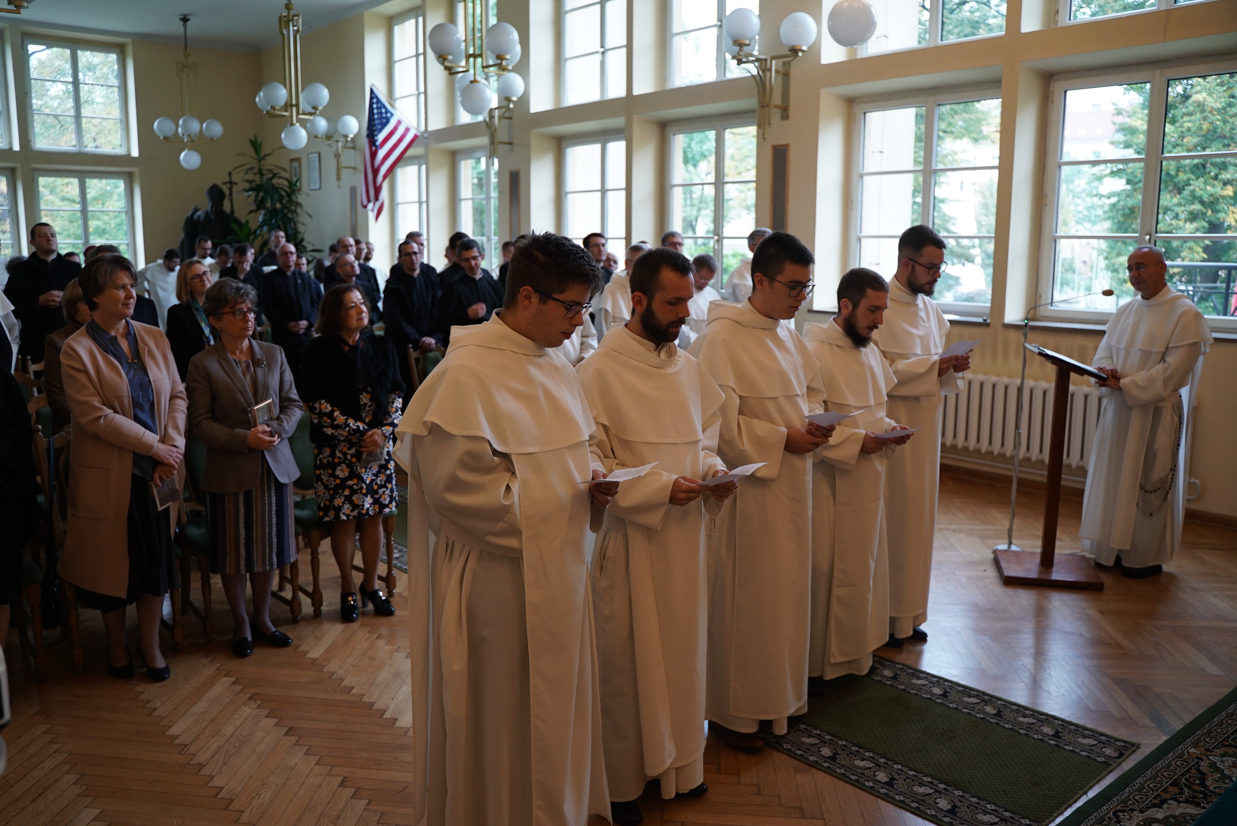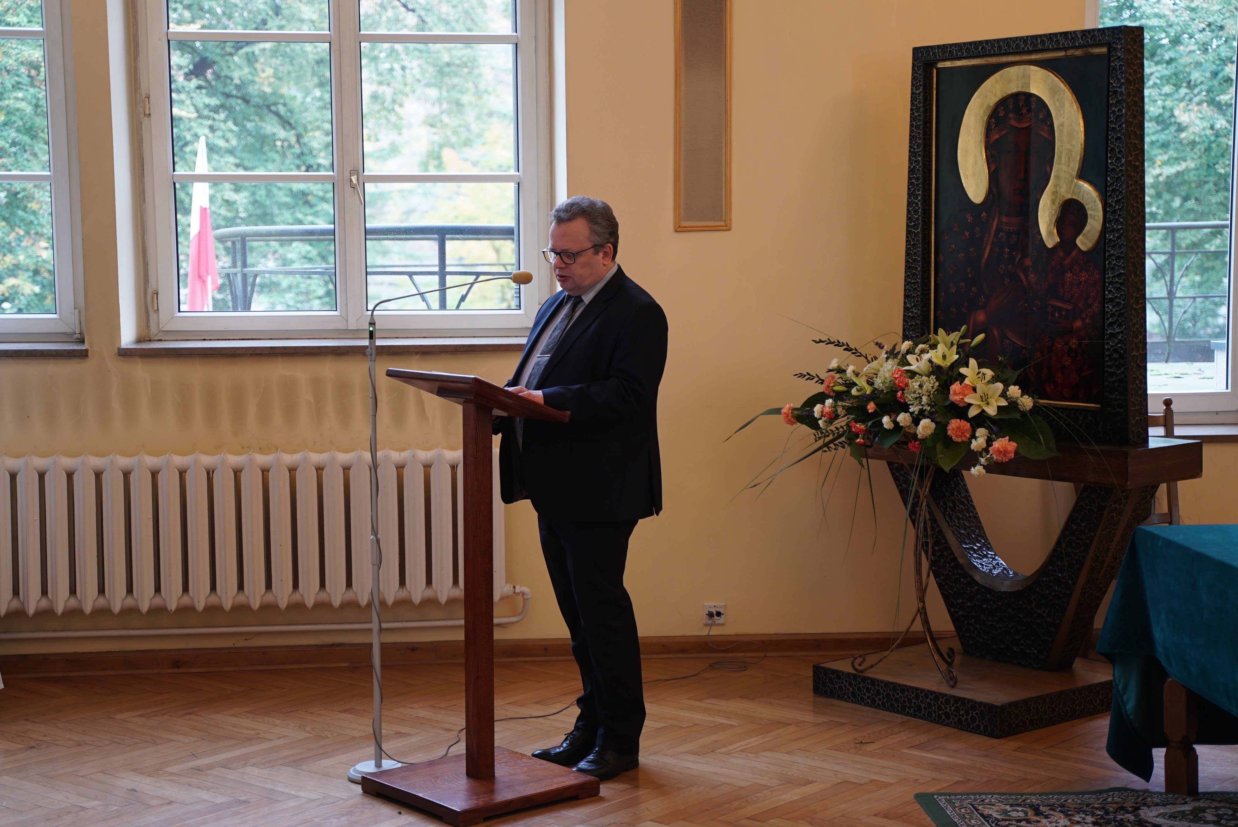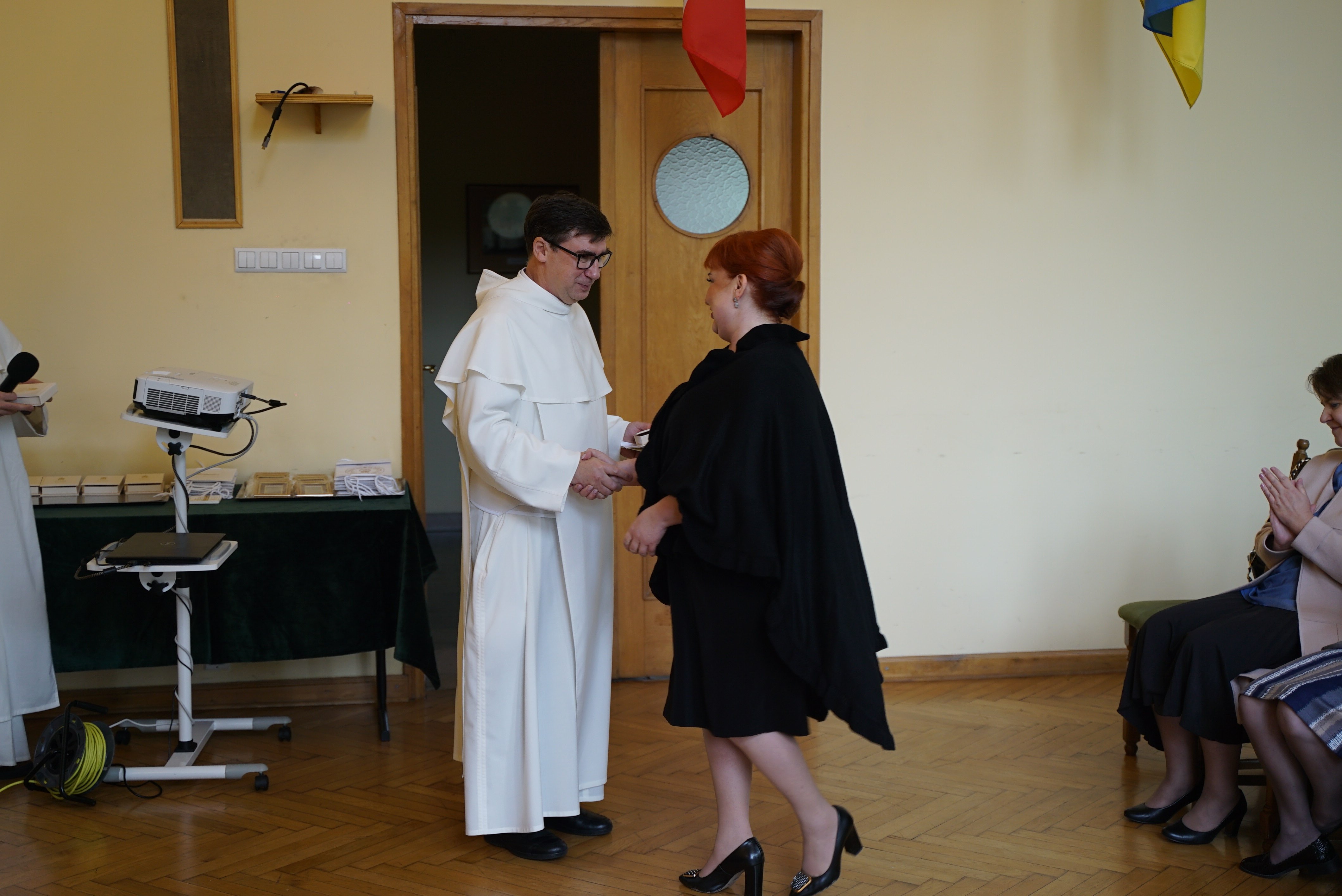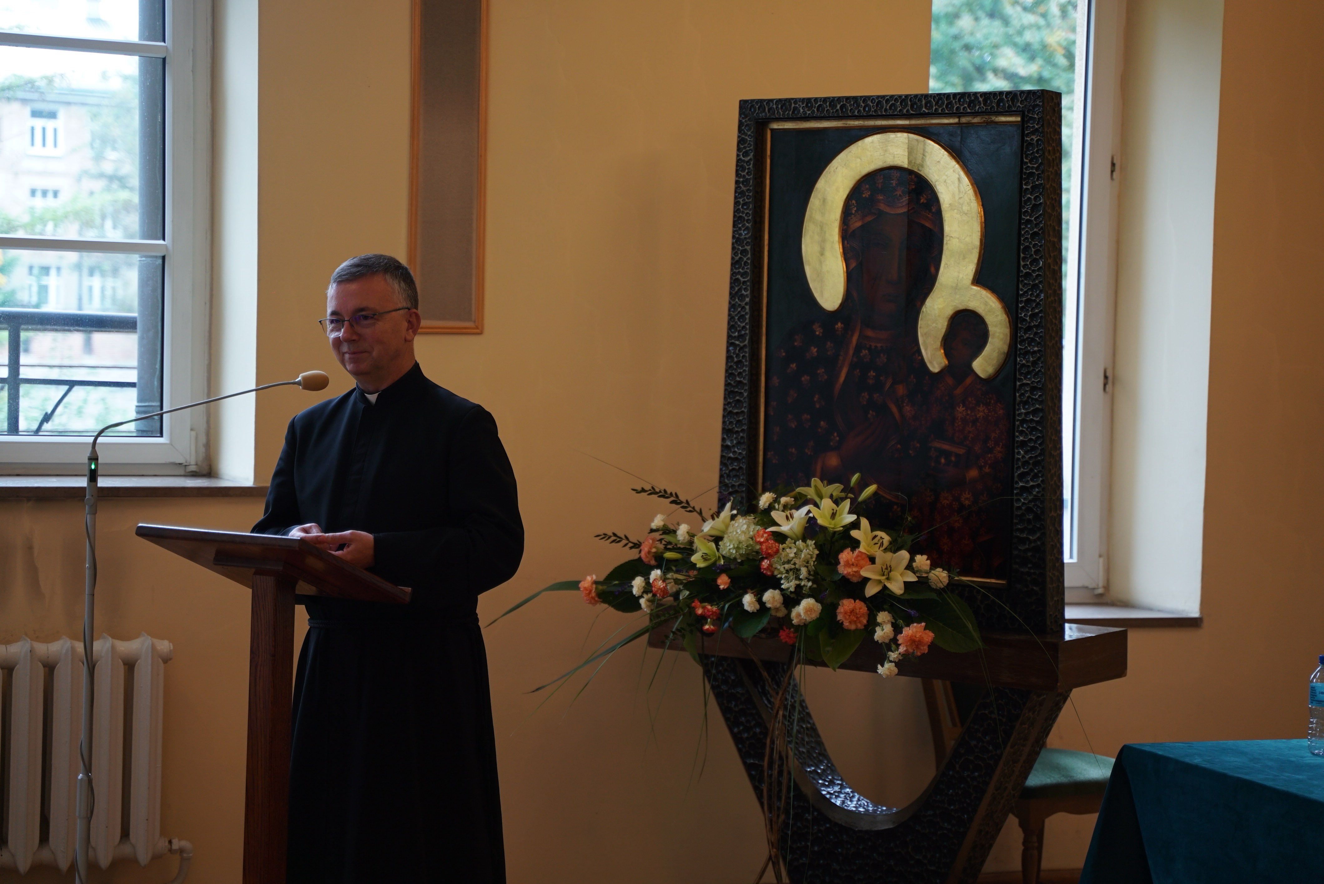 Druga część wydarzenia miała miejsce w auli Wyższego Seminarium Duchownego oo. Paulinów. Na wstępie odśpiewaliśmy hymn Gaude Mater Polonia, a następnie wysłuchaliśmy przemówienia rektora seminarium skałecznego o. Mariusza Tabulskiego OSPPE oraz wykładu inauguracyjnego zatytułowanego „Dziedzictwo historyczne Paulinów na Skałce, fundacja klasztoru i jego założyciel”, który wygłosił dr hab. Marek Kowalski (UJ).