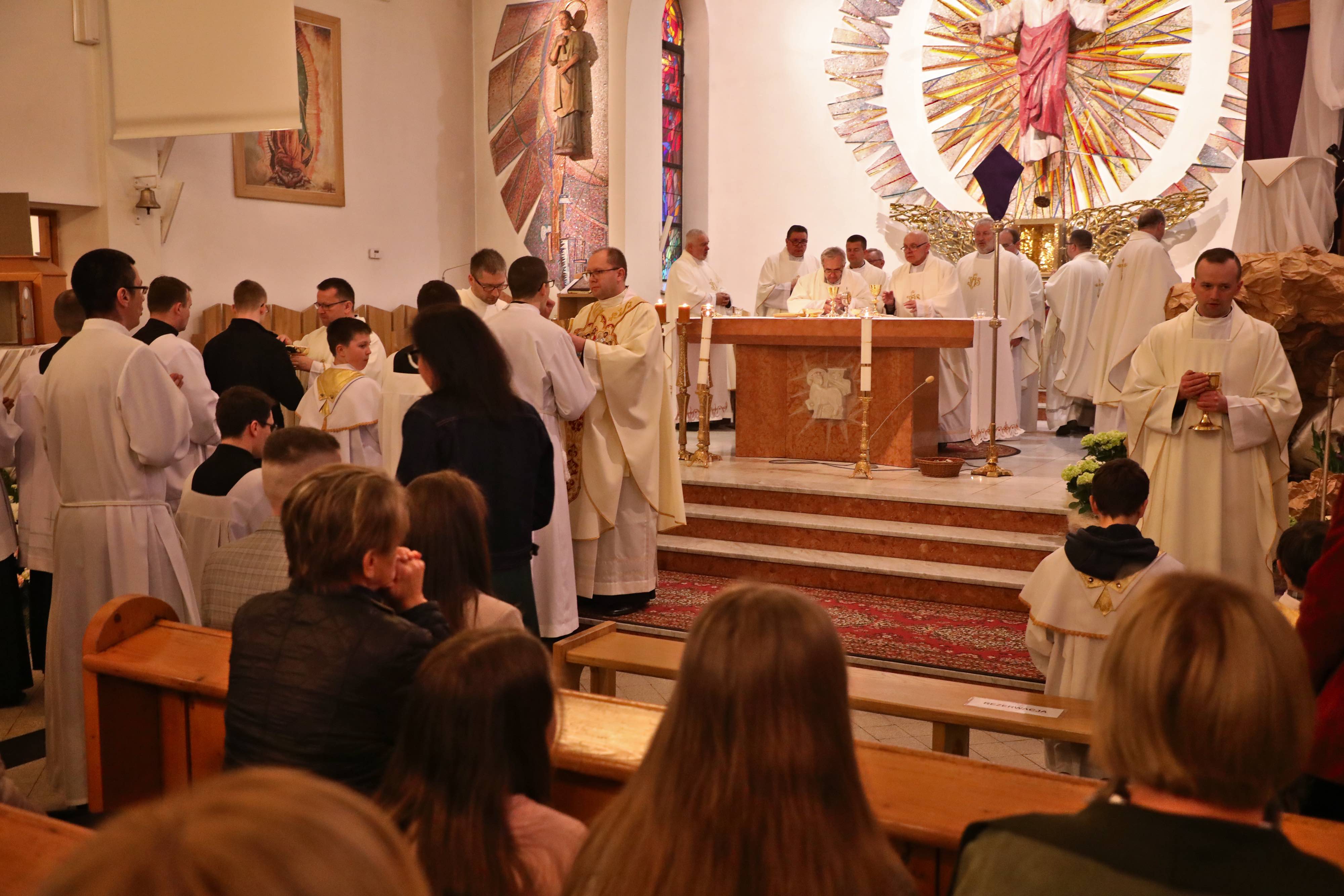 Natomiast wieczorem udaliśmy się do kościoła parafialnego, aby uczestniczyć w Mszy Świętej Wieczerzy Pańskiej, która rozpoczyna święte Triduum Paschalne. Świąteczny charakter tej celebracji wyrażał się przede wszystkim w otrzymanej wolności dzieci Bożych, naszym dziękczynieniu Jezusowi za sakramenty Eucharystii i Kapłaństwa oraz wzajemnej miłości, której wzór zostawił nam Chrystus w prostym geście umywania nóg.