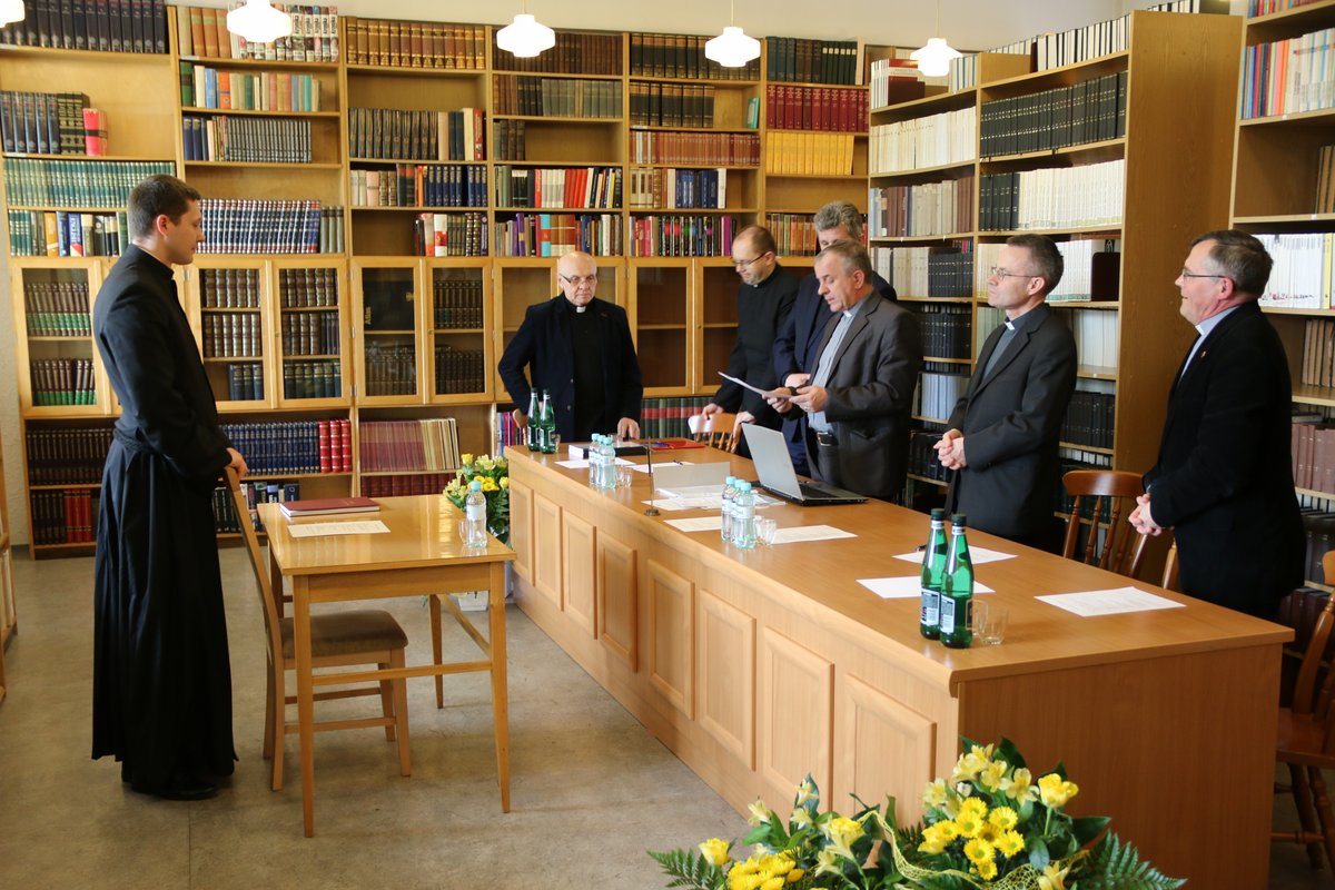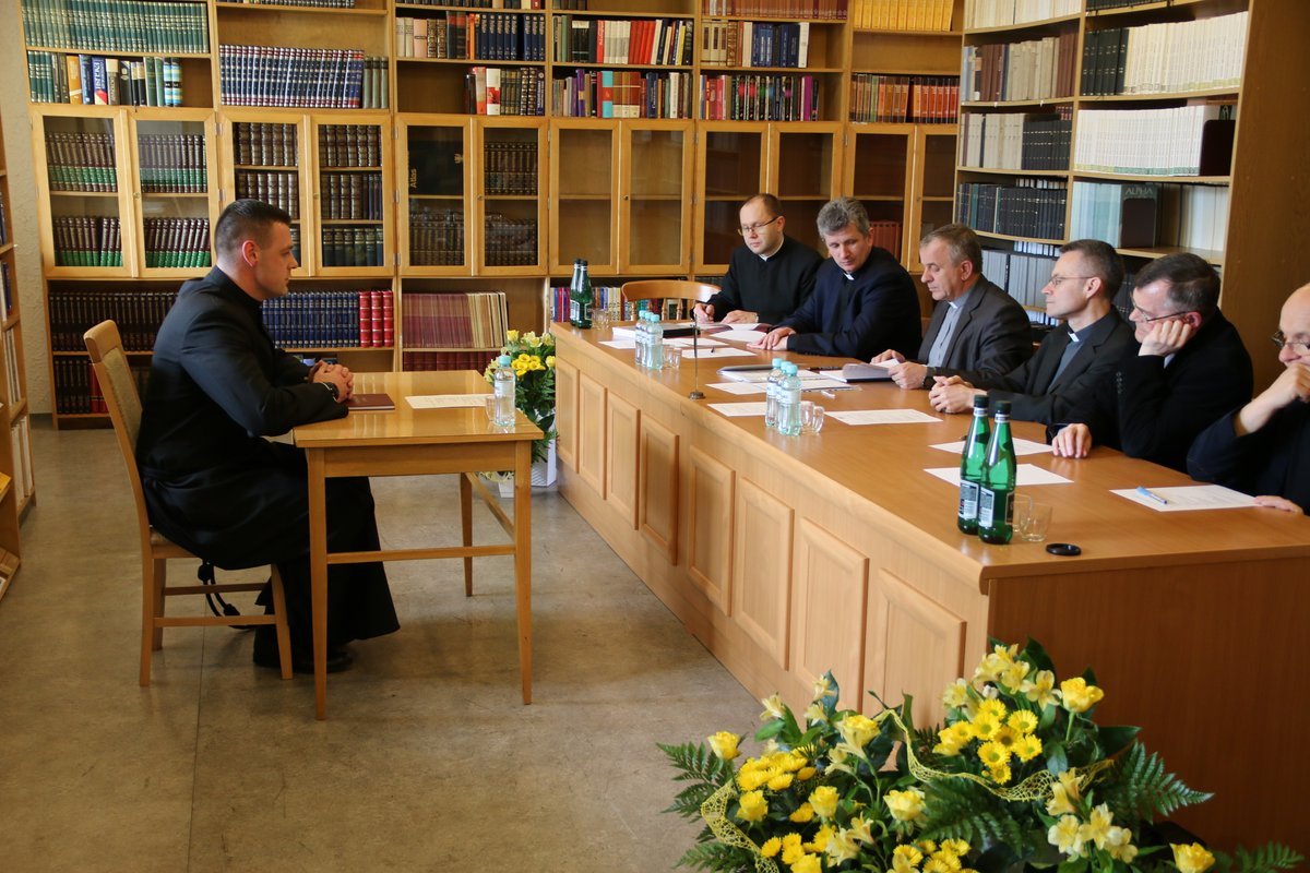 Po kilkuletniej przerwie w naszym seminarium odbyła się obrona prac magisterskich oraz egzamin ex universa theologia, do którego przystąpiło czterech alumnów VI roku. W poniedziałek 23 kwietnia 2018 r. o godz. 14.00 w lektorium (czytelni) zgromadziła się komisja w składzie: ks. prof. dr hab. Stanisław Hałas SCJ (Teologia biblijna); ks. dr hab prof. UPJPII Tadeusz Kałużny SCJ (Teologia dogmatyczna); ks. dr Krzysztof Paluch SCJ (Teologia moralna); ks. dr Dariusz Salamon SCJ (Teologia fundamentalna). Na czele komisji stanął ks. dr hab. prof. UPJPII Roman Bogacz, prodziekan Wydziału Teologicznego Uniwersytetu Papieskiego Jana Pawła II w Krakowie, do którego jest afiliowane nasze sercańskie seminarium.