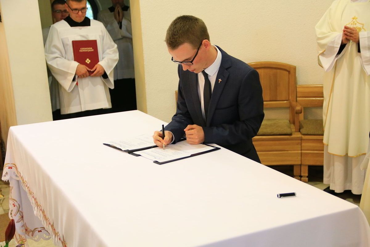 Oczy całej prowincji zwróciły się dzisiaj w stronę Stopnicy, gdzie czterech nowicjuszy złożyło swoją pierwszą profesję zakonną. Adam Maj, Karol Szlezinger, Paweł Szlezinger i Szymon Włodarczyk w sobotę 23 września 2017 r. wyrazili wolę naśladowania Chrystusa ubogiego, czystego i posłusznego składając zakonne śluby. Otoczeni modlitwą licznie przybyłych współbraci oraz najbliższej rodziny uczynili ważny krok na drodze formacji zakonnej.