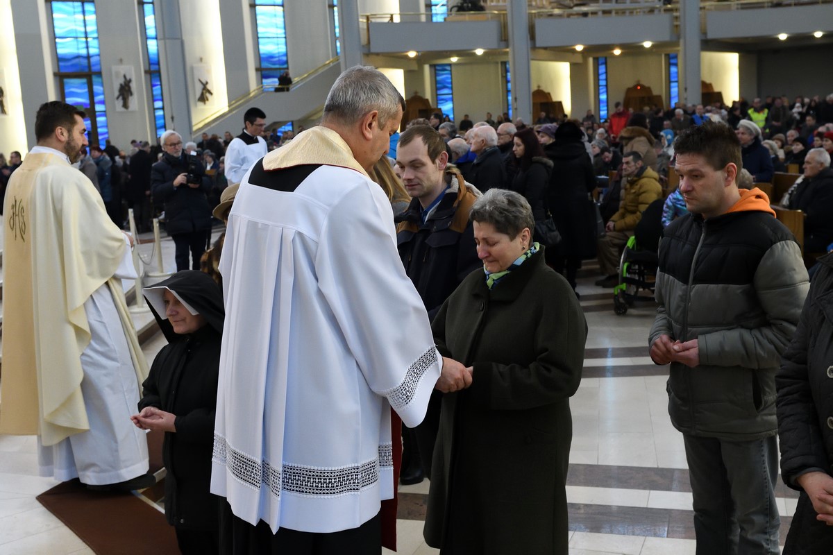 Diecezjalne Obchody Światowego Dnia Chorego rozpoczęły się w Godzinie Miłosierdzia, wspólnym odmówieniem Koronki do Bożego Miłosierdzia. Następnie Mszy św. o godz. 15.20 przewodniczył ks. abp Marek Jędraszewski, a współkoncelebrowali ją krakowscy biskupi: Jan Zając i Jan Szkodoń oraz wielu kapłanów (m.in. rektor sercańskiego seminarium - ks. Leszek Poleszak SCJ oraz wychowawca kleryków - ks. Łukasz Grzejda SCJ - przyp. red.).