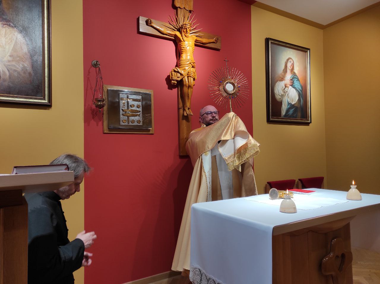 Listopadowy dzień odnowienia zakończył się wspólnotową celebracją Mszy świętej, która była sprawowana we wspomnienie świętych pierwszych męczenników Polski. Prowadzący, nawiązując do odczytanej ewangelii, podkreślił słowa Jezusa: „Królestwo Boże jest pośród was”, zachęcając w ten sposób, aby umieć docenić to spotkanie, ten czas modlitwy liturgicznej, spowiedzi, adoracji i wreszcie Eucharystii, jako wielkiego dziękczynienia. Ks. Mariusz Wrzesiński SCJ zakończył swoje kazanie przykładem męczenników, zachęcając by w trudnych chwilach życia spojrzeć na krzyż Chrystusa i mocno się do niego przytulić, jak to uczynili dzisiejsi święci: Benedykt, Jan, Mateusz, Izaak i Krystyn.