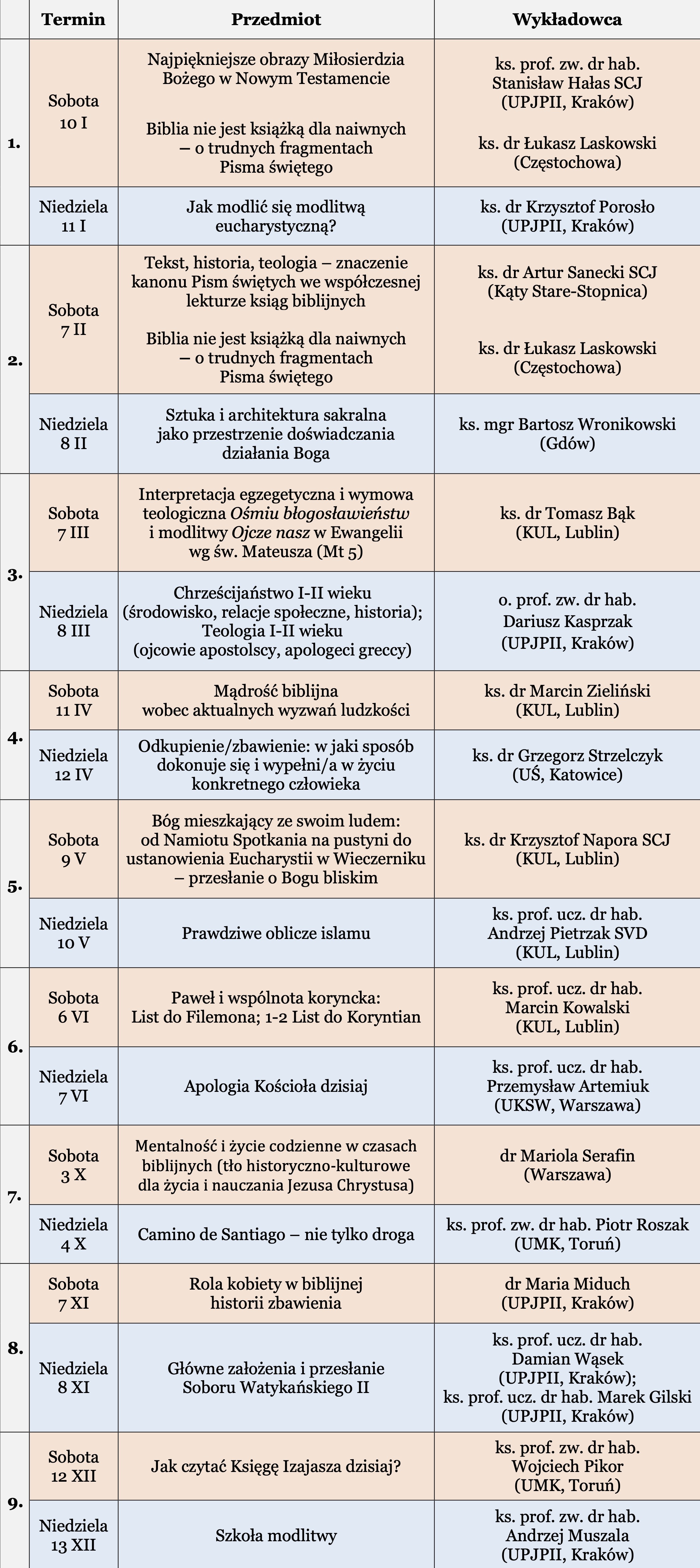 Program wykładów