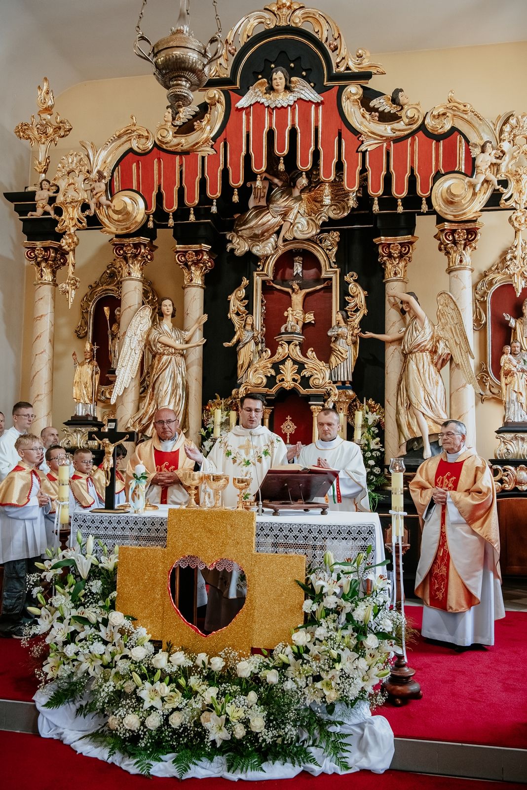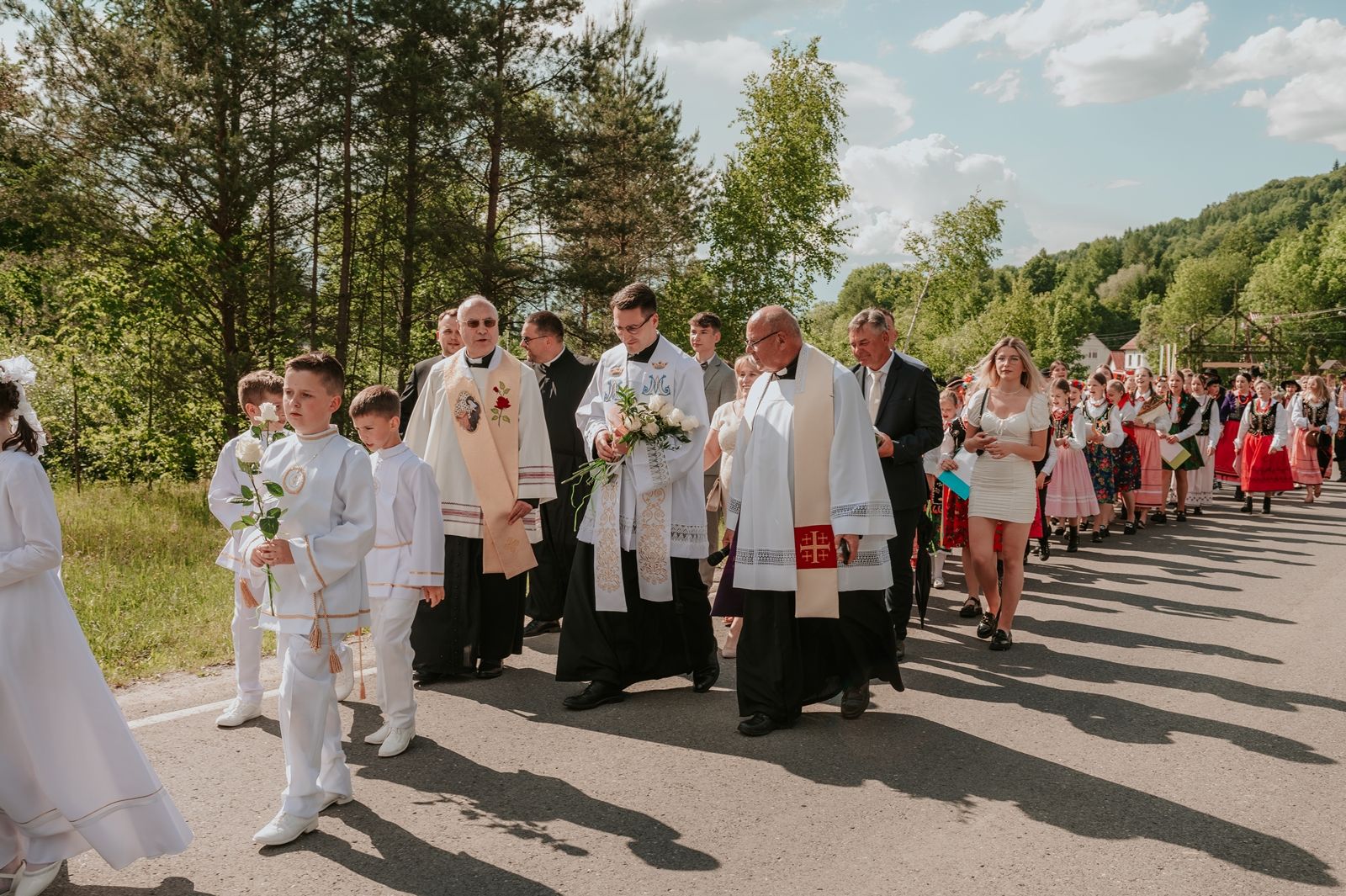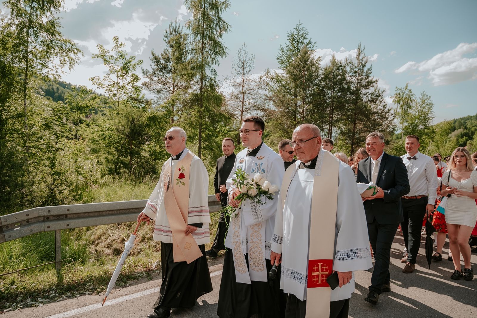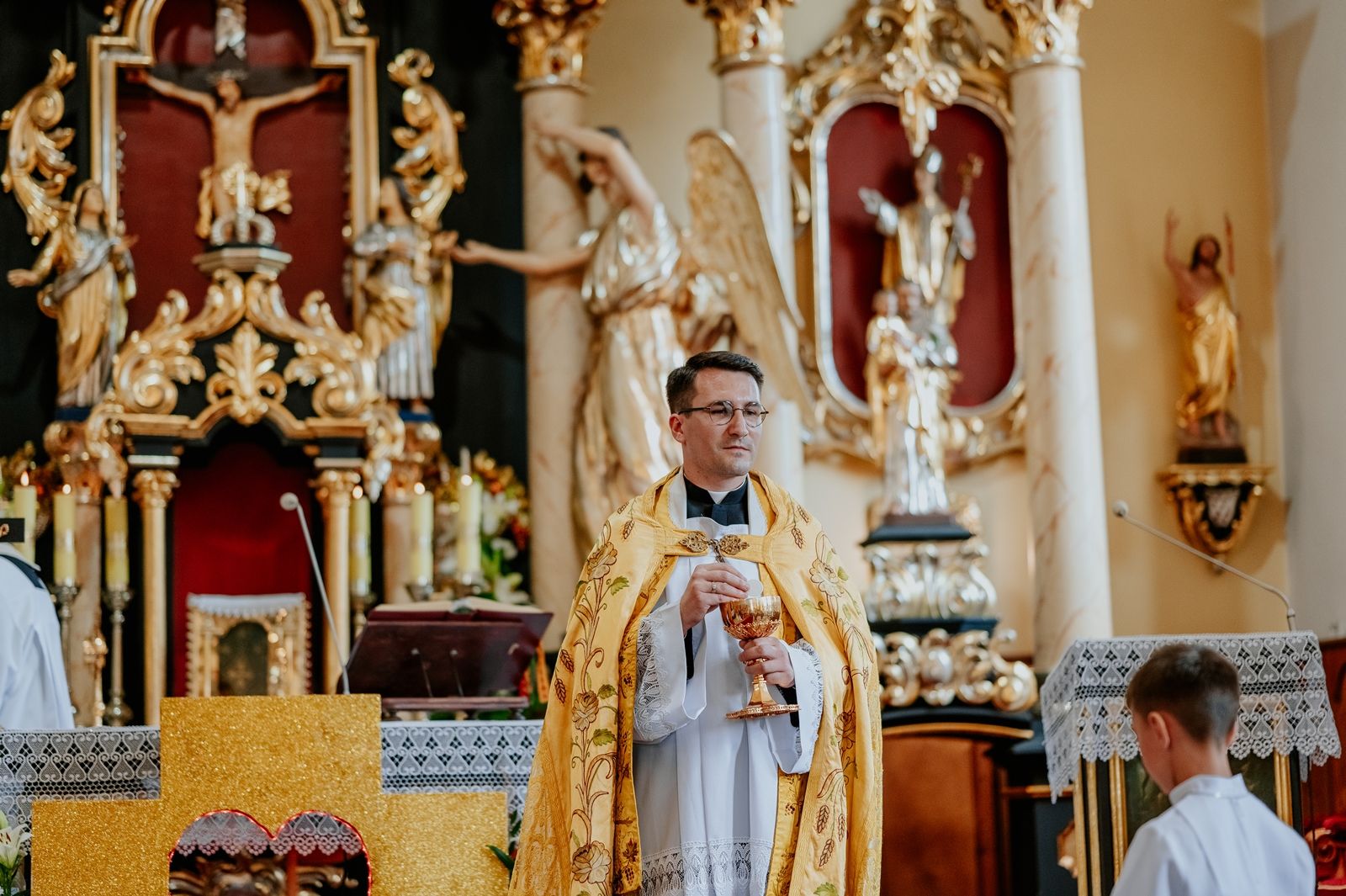 Następnego dnia, wierni zgromadzili się licznie pod domem rodzinnym prymicjanta, w którym rodzice udzielili mu swojego błogosławieństwa. Po tym, wszyscy wyruszyli w stronę kościoła, gdzie o godzinie 11:00 rozpoczęła się Eucharystia prymicyjna, której przewodniczył neoprezbiter. Licznie uczestniczyli w niej księża sercanie oraz znajomi księdzu Mateuszowi kapłani. Okolicznościową homilię wygłosił ks. Damian Płatek SCJ, wieloletni duszpasterz powołań naszej Prowincji, a dziś proboszcz parafii pw. MB Fatimskiej w Krakowie (Małym Płaszowie). Przed zakończeniem Eucharystii liczne grupy parafialne złożyły swojemu rodakowi wzruszające życzenia, zapewniając o nieustannej modlitwie w jego intencji. Po czym, głos zabrał także ks. Mateusz, wyrażając niekryte ogromem doświadczonego dobra poruszenie oraz wdzięczność za organizację tej uroczystości i obecność w jej trakcie.