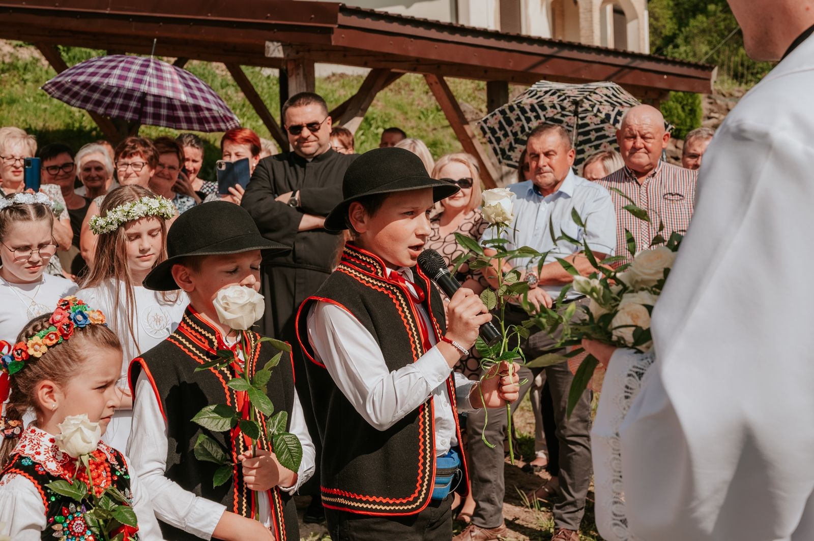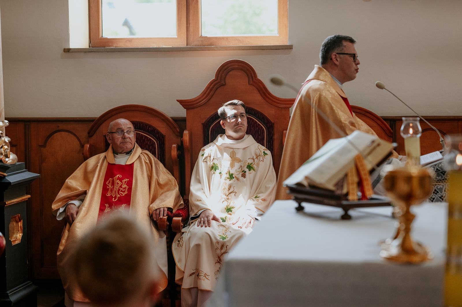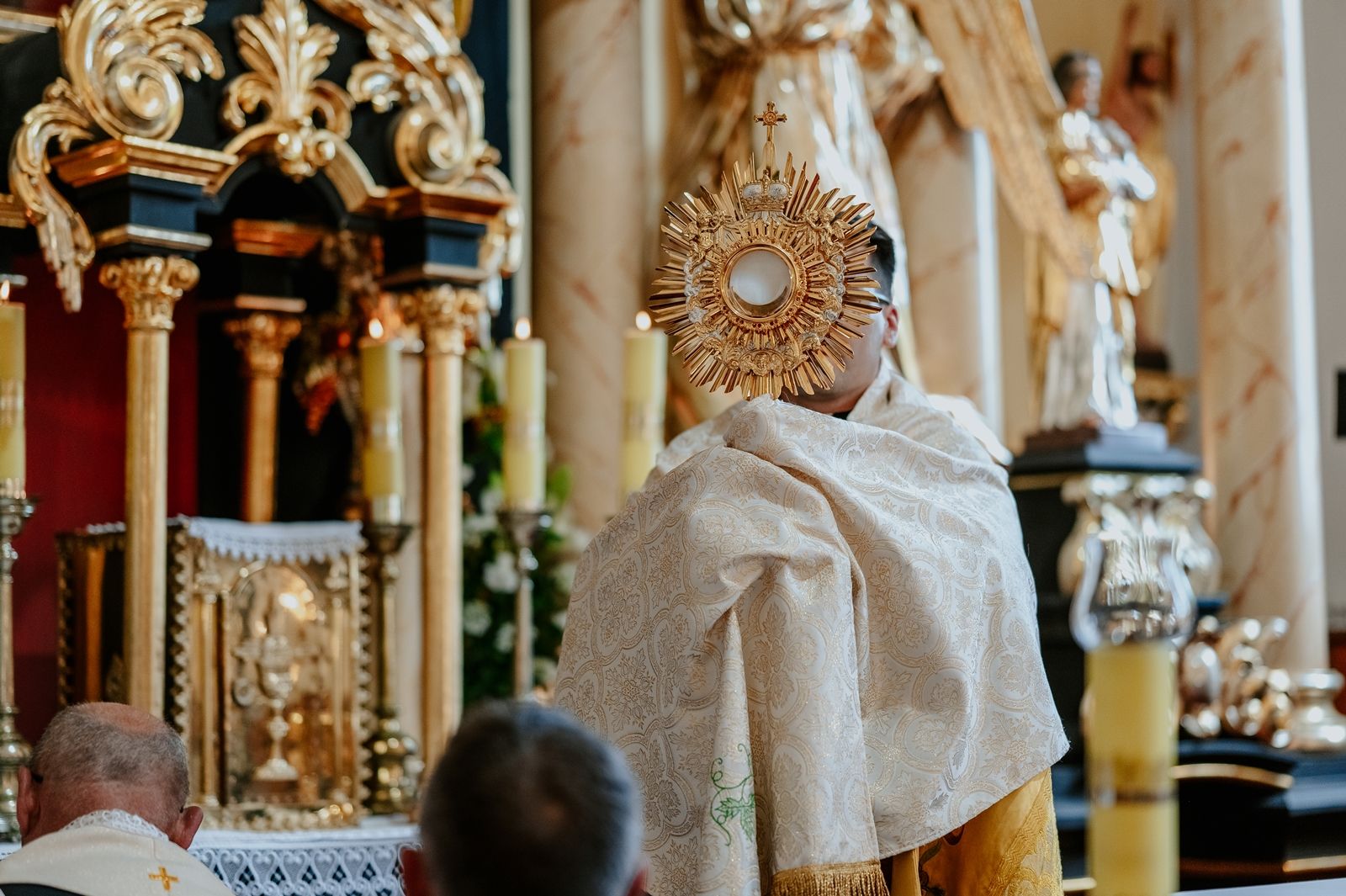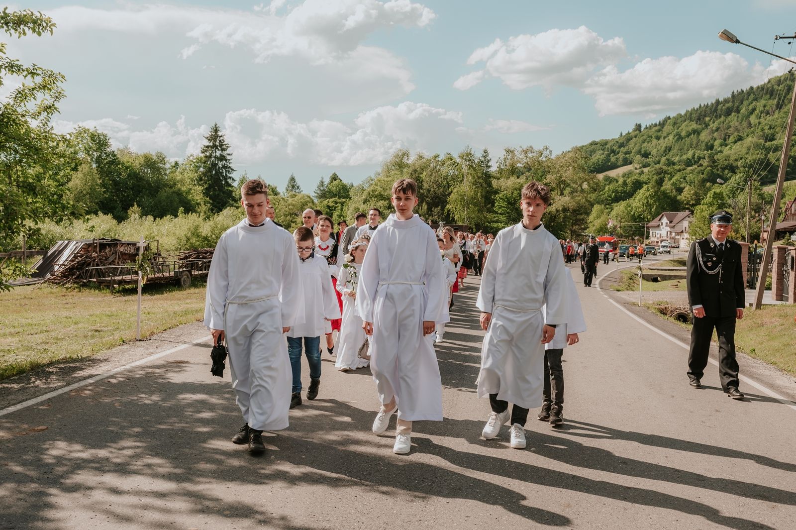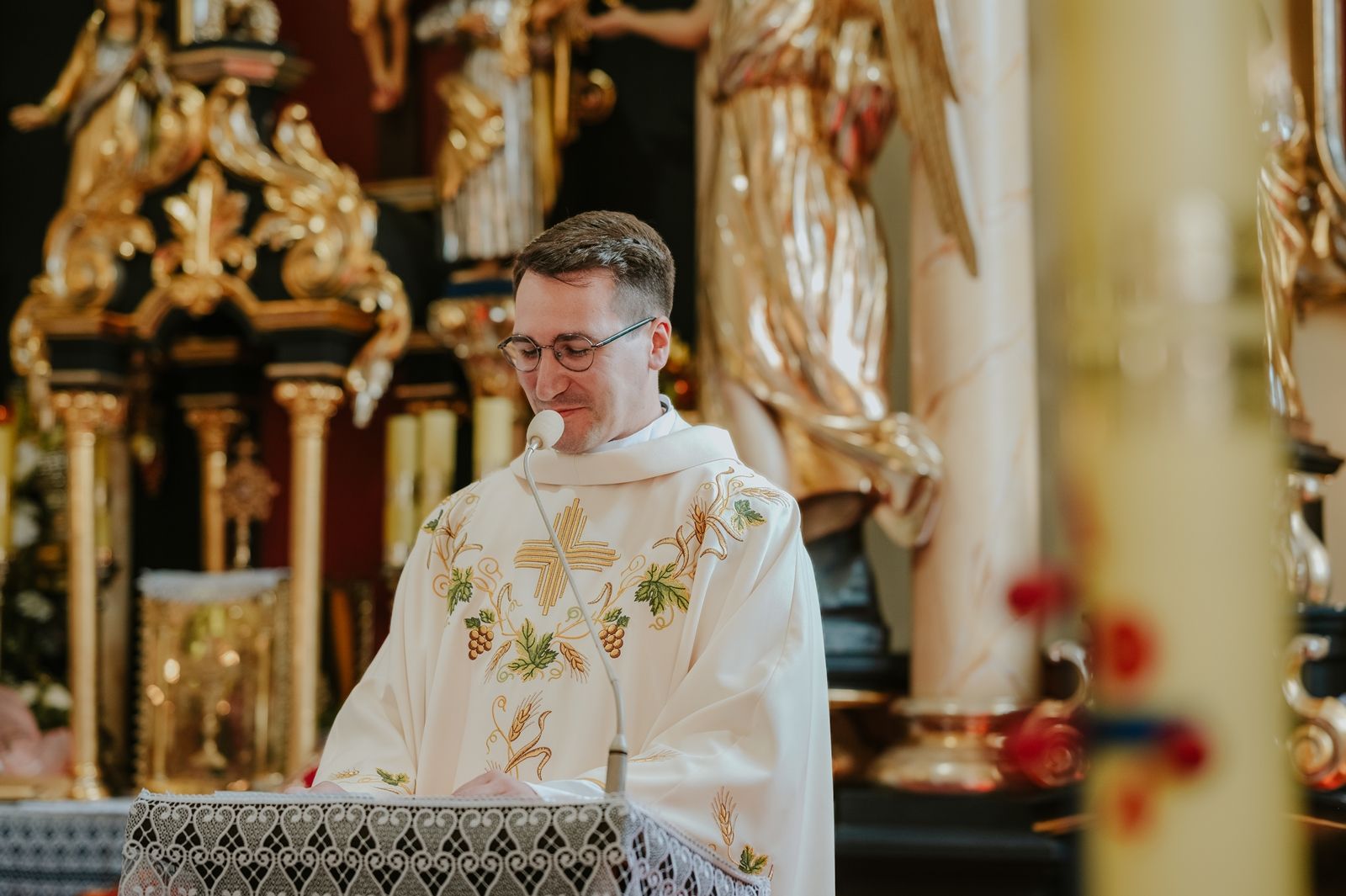 Następnego dnia, wierni zgromadzili się licznie pod domem rodzinnym prymicjanta, w którym rodzice udzielili mu swojego błogosławieństwa. Po tym, wszyscy wyruszyli w stronę kościoła, gdzie o godzinie 11:00 rozpoczęła się Eucharystia prymicyjna, której przewodniczył neoprezbiter. Licznie uczestniczyli w niej księża sercanie oraz znajomi księdzu Mateuszowi kapłani. Okolicznościową homilię wygłosił ks. Damian Płatek SCJ, wieloletni duszpasterz powołań naszej Prowincji, a dziś proboszcz parafii pw. MB Fatimskiej w Krakowie (Małym Płaszowie). Przed zakończeniem Eucharystii liczne grupy parafialne złożyły swojemu rodakowi wzruszające życzenia, zapewniając o nieustannej modlitwie w jego intencji. Po czym, głos zabrał także ks. Mateusz, wyrażając niekryte ogromem doświadczonego dobra poruszenie oraz wdzięczność za organizację tej uroczystości i obecność w jej trakcie.