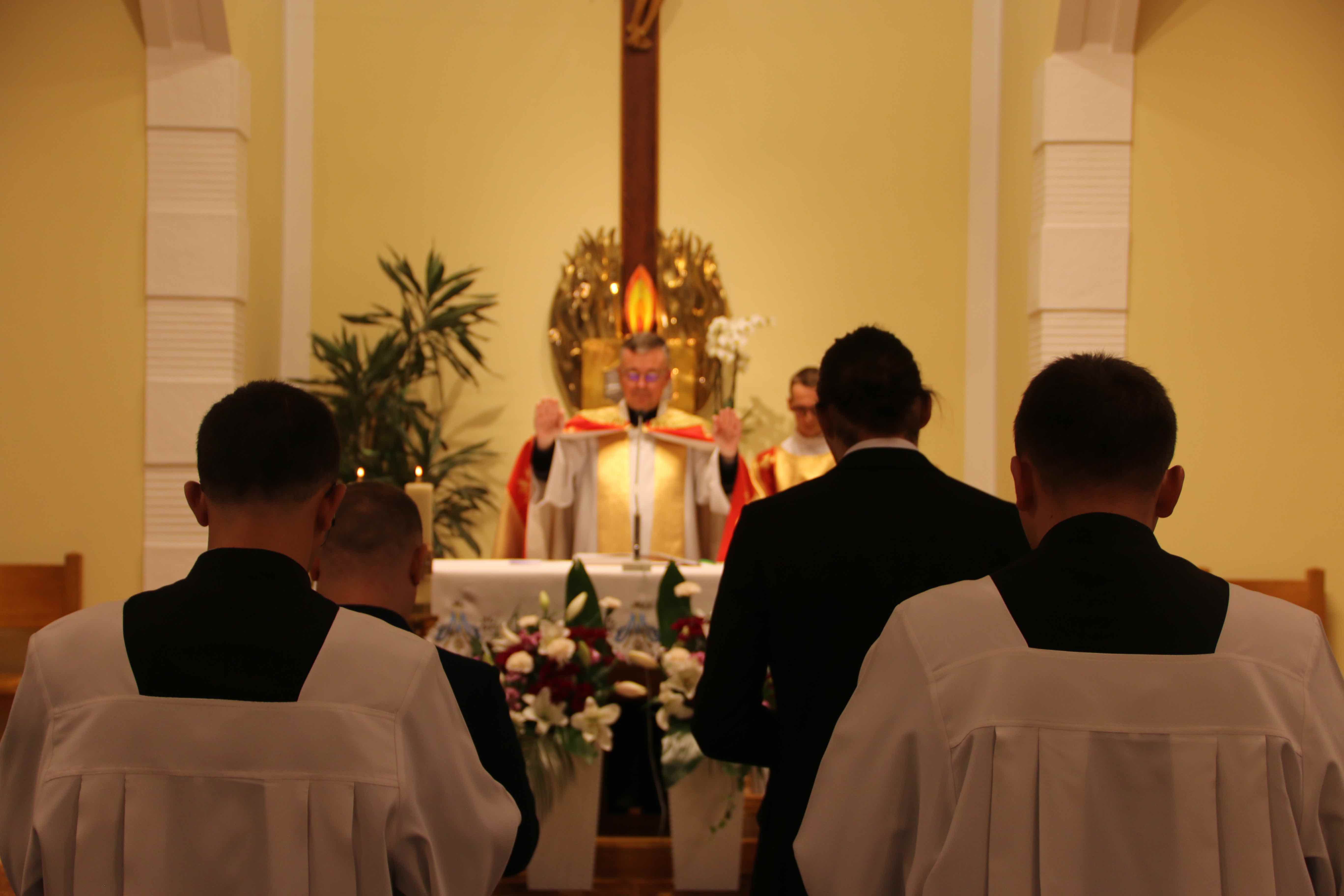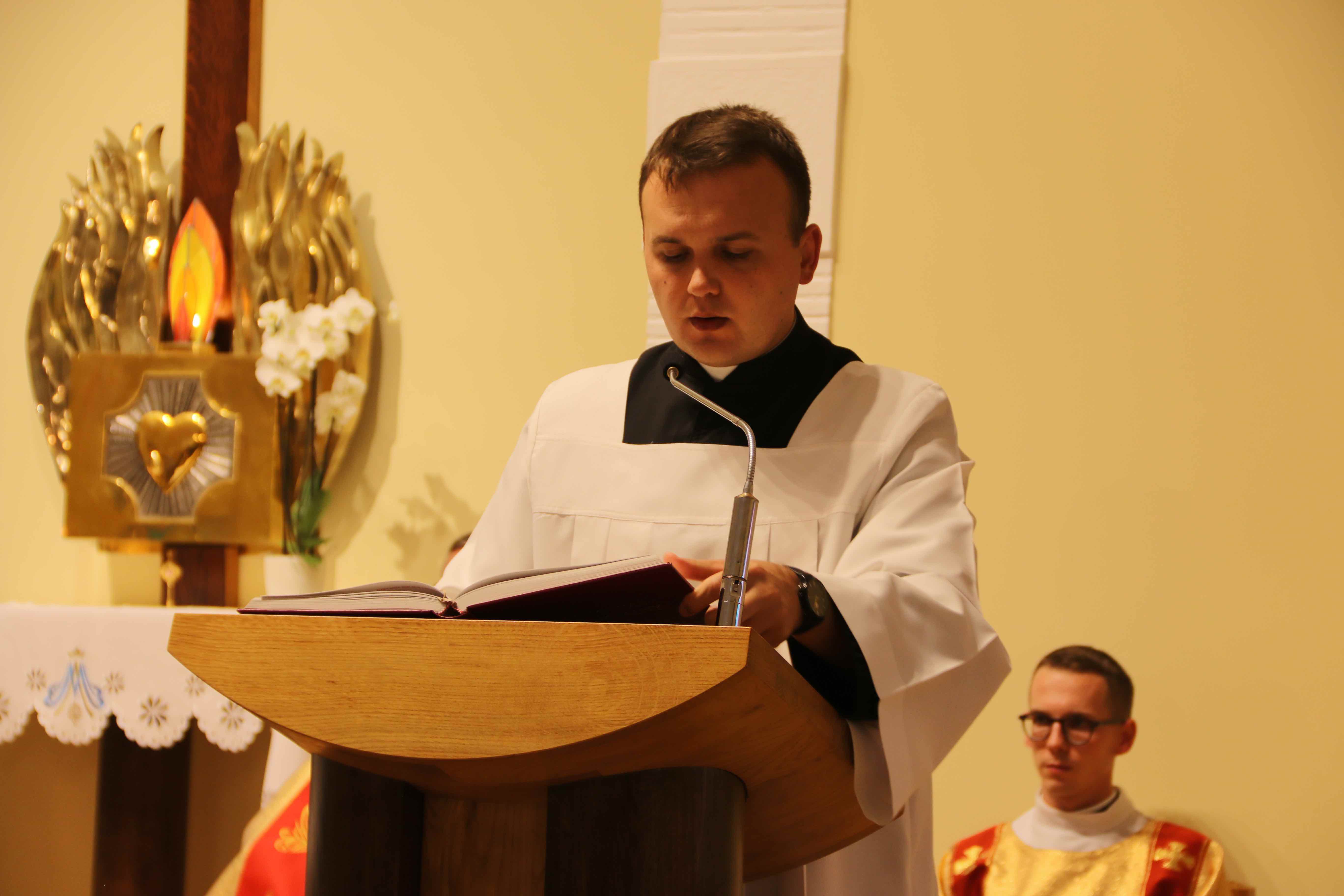 W czasie liturgii słowa Bożego, podczas której miały miejsce obrzędy przyjęcia do postulatu, ks. prowincjał Sławomir Knopik SCJ zwrócił uwagę na przedwieczny zamysł Boga, aby obdarzyć człowieka szczególnym powołaniem. Potwierdzają to m.in. słowa Jeremiasza: „Zanim ukształtowałem cię w łonie matki, znałem cię, nim przyszedłeś na świat, poświęciłem cię, prorokiem dla narodów ustanowiłem cię (Jr 1,5). Nadprzyrodzone powołanie jest zaproszeniem ze strony Boga, który powołując człowieka, pragnie jego szczęścia. W związku z tym powołany nigdy nie jest zostawiony sam sobie, nawet gdy spotykają go trudności na drodze powołania. Właśnie wtedy Bóg mówi mu: „Nie lękaj się„ (Iz 43, 1).