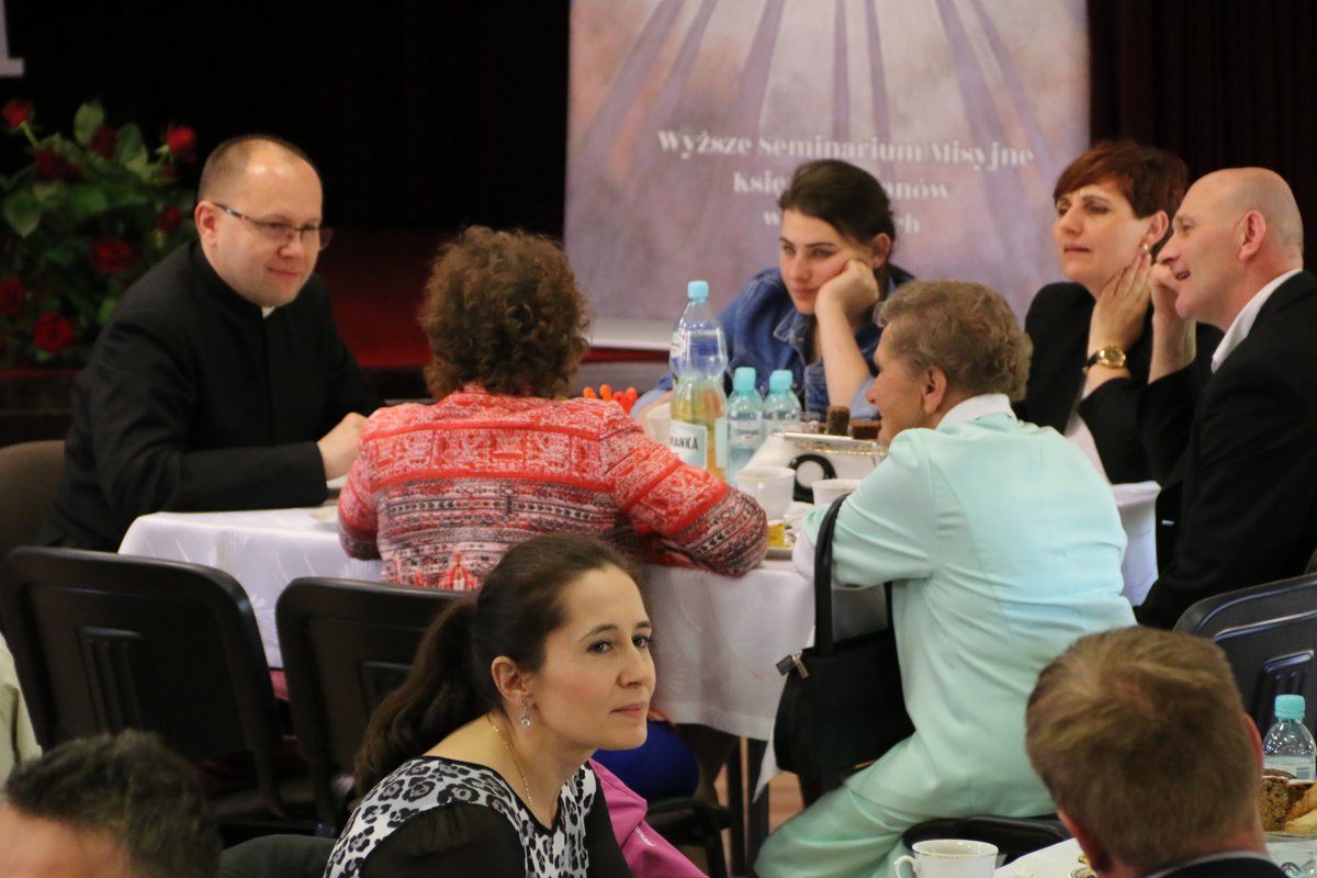W dniu 6 maja 2018 roku w VI niedzielę wielkanocną miało miejsce pierwsze tegoroczne spotkanie rodziny misyjnej, na które przybyli zarówno goście reprezentujący rodziny naszych misjonarzy, jak też wolontariusze z naszego biura misyjnego w Lublinie oraz wolontariusze misji zagranicznych Missio Cordis. Towarzyszyła nam atmosfera gościnności zapewniona dzięki życzliwości stadnickiego seminarium, a także troska o wzrost i rozwój dzieła misyjnego naszej prowincji. Takie spotkania dają możliwość rozmowy na temat naszego zaangażowania misyjnego jak też wymiany opinii, budowania nowych relacji i poznania się wzajemnego pomiędzy ludźmi zaprzyjaźnionymi z naszym sekretariatem misji, naszych współpracowników i ich rodzin. W spotkaniu wzięło udział prawie 50 osób.