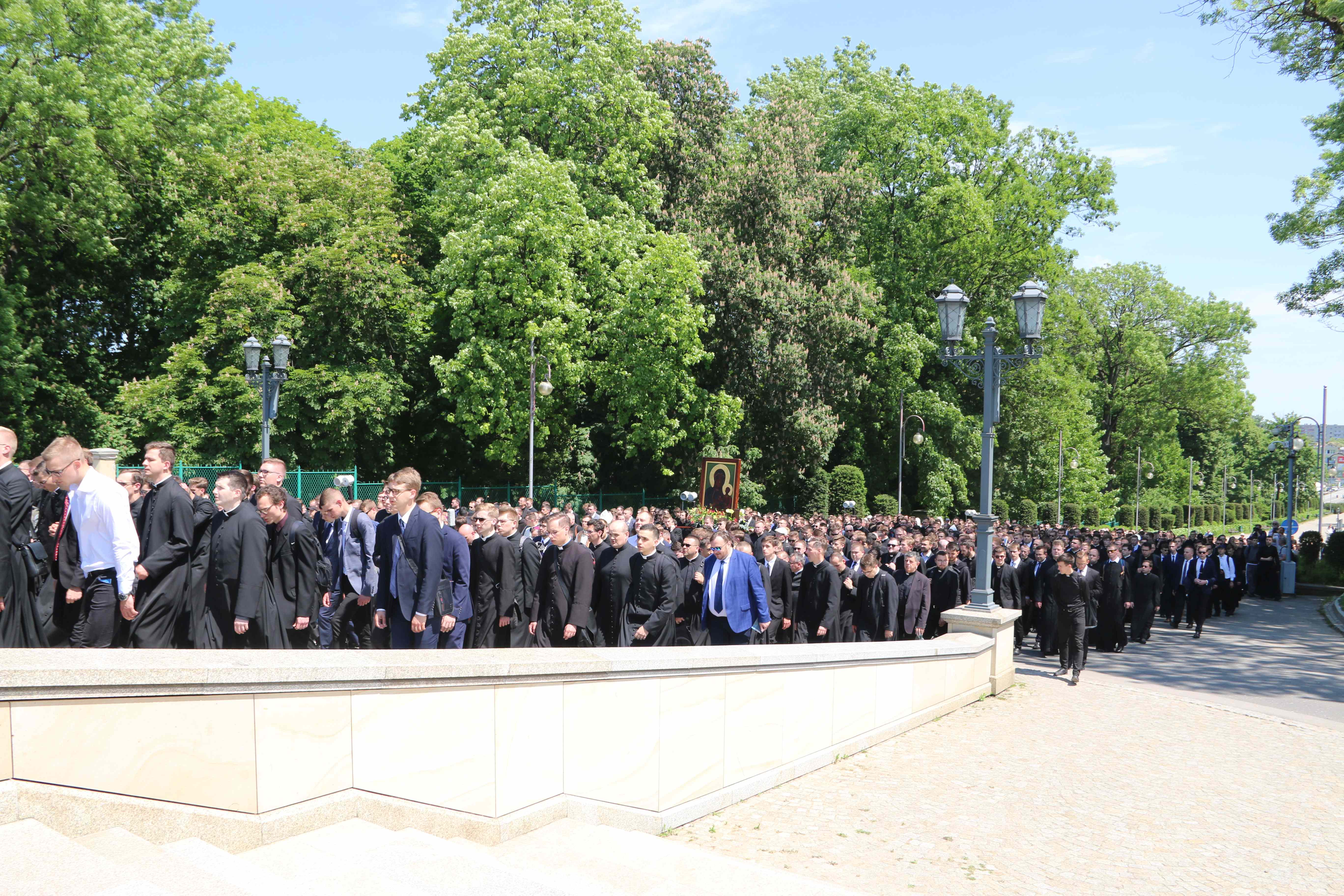 Po modlitwie adoracyjnej, w procesji, której przewodniczył abp Wojciech Polak, prymas Polski, pielgrzymi udali się na Jasną Górę. Idąc Alejami Najświętszej Maryi Panny kandydaci do kapłaństwa oraz ich wychowawcy modlili się na różańcu, rozważając tajemnice naszego zbawienia na podstawie tekstów bł. Stefana kard. Wyszyńskiego.